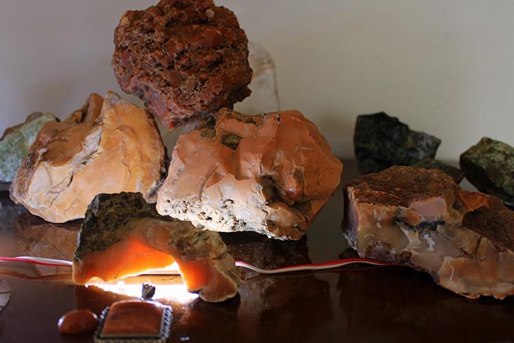 Antik mısırda günbatımı olarak isimlendirilen taşı Erzurum’da bulduğunu belirten Tarih Araştırmacısı Oğuzhan Türk “Yaklaşık 20 yıldır Erzurum tarihi, tabiatı ve madenleri üzerine çalışmalar yapıyorum. Erzurum’un çeşitli yerlerinden topladığım bedelli taşları geniş bir koleksiyon haline getirdim. Burada çok özel taşlar bulunuyor. Ayrıyeten yeni bulduğum ve ismini ‘Erzurum Ateşi’ koyduğum bir taş tipi daha var. Bu taşın gerekli testlerini yaptırdım. Karnelyan taşı denilen hoş bir taş olduğu ortaya çıktı. Antik Mısırda renginden ötürü günbatımı olarak isimlendirilen bir taş” dedi.